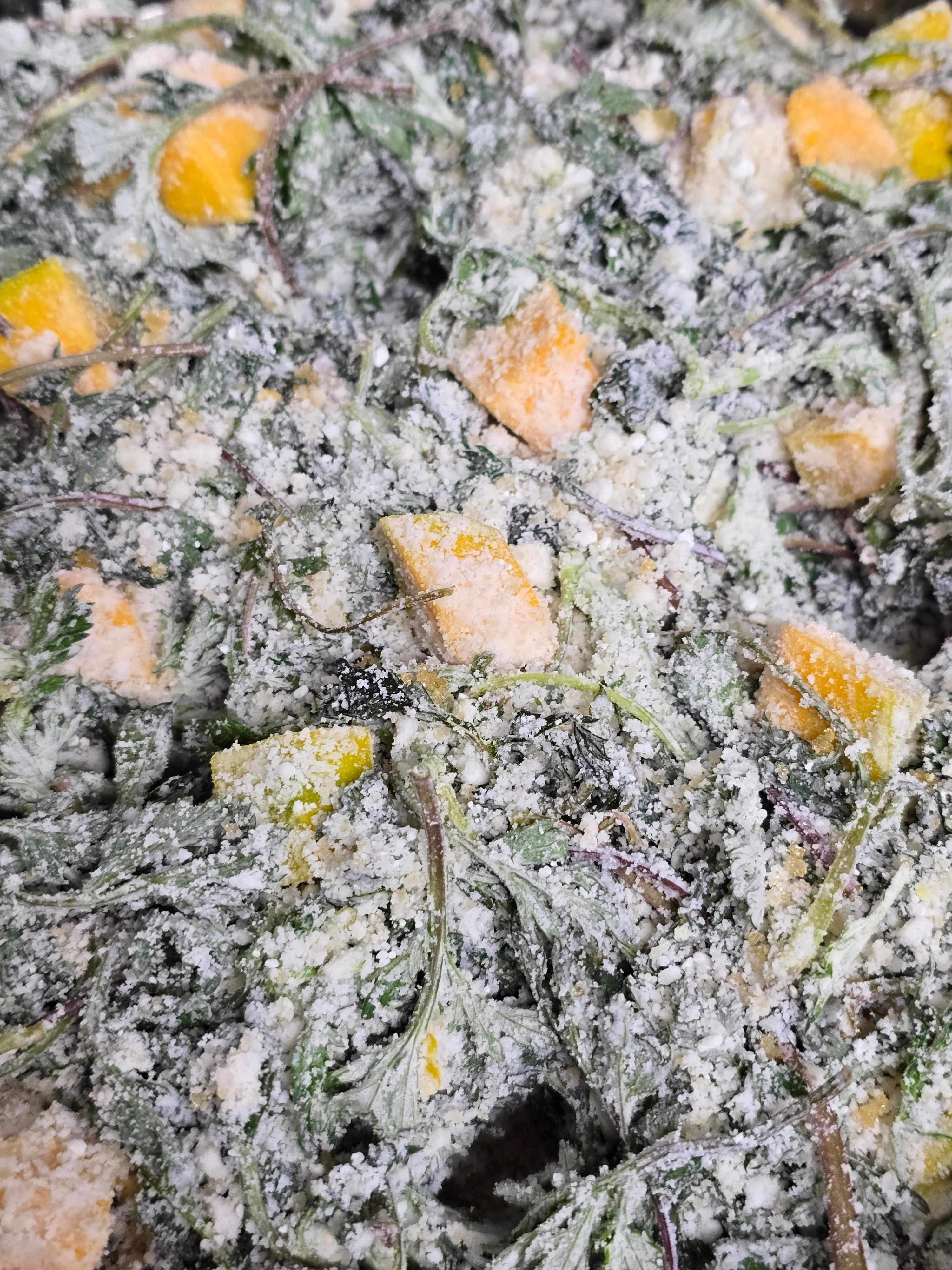 씻어둔 쑥을 물기가 남은 채로 쌀가루에 넣어 단호박과 함께 조심스레 버무린다.